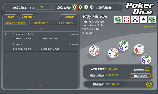Vous jouez avec cinq dés présentant six symboles différents : 9, 10, valet, dame, roi et as. Les couleurs ne sont d'aucune importance à ce jeu. Pariez sur chaque lancer de cinq dés, essayez de prédire le résultat. Vous pouvez parier sur des symboles seuls ou sur une combinaison.