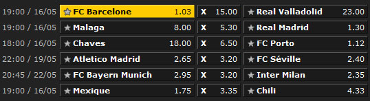 Nous sélectionnons le premier pari du pari combiné : la victoire du FC Barcelone (cote : 1.03) contre le Real Valladolid.