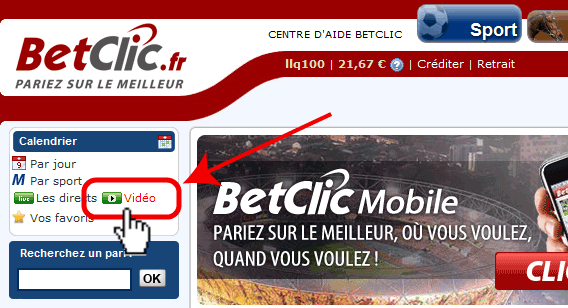 1) Pour visualiser les rencontres en streaming de Betclic, commencez par vous identifier, puis cliquer sur "Vidéo" dans la colonne de gauche du site :